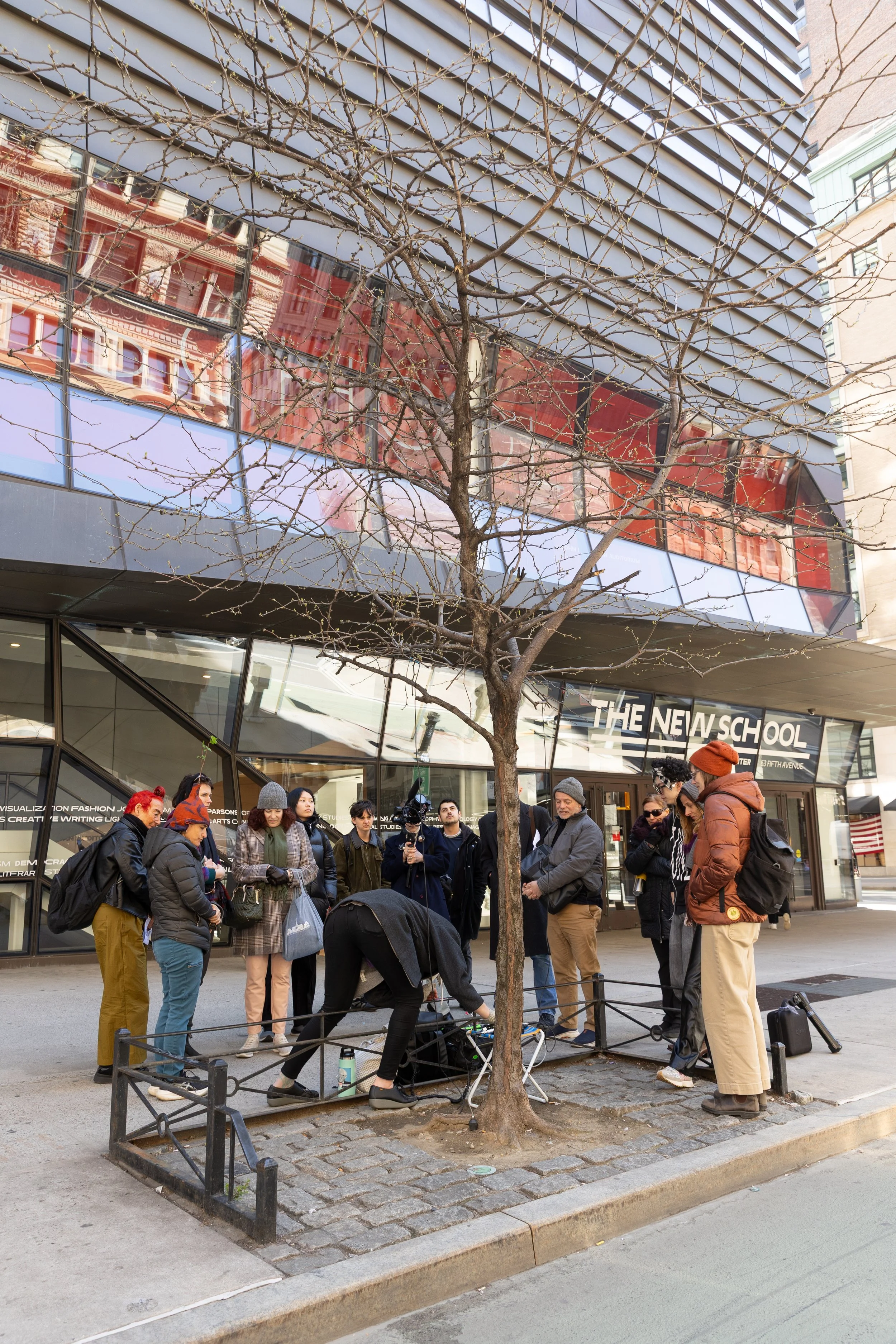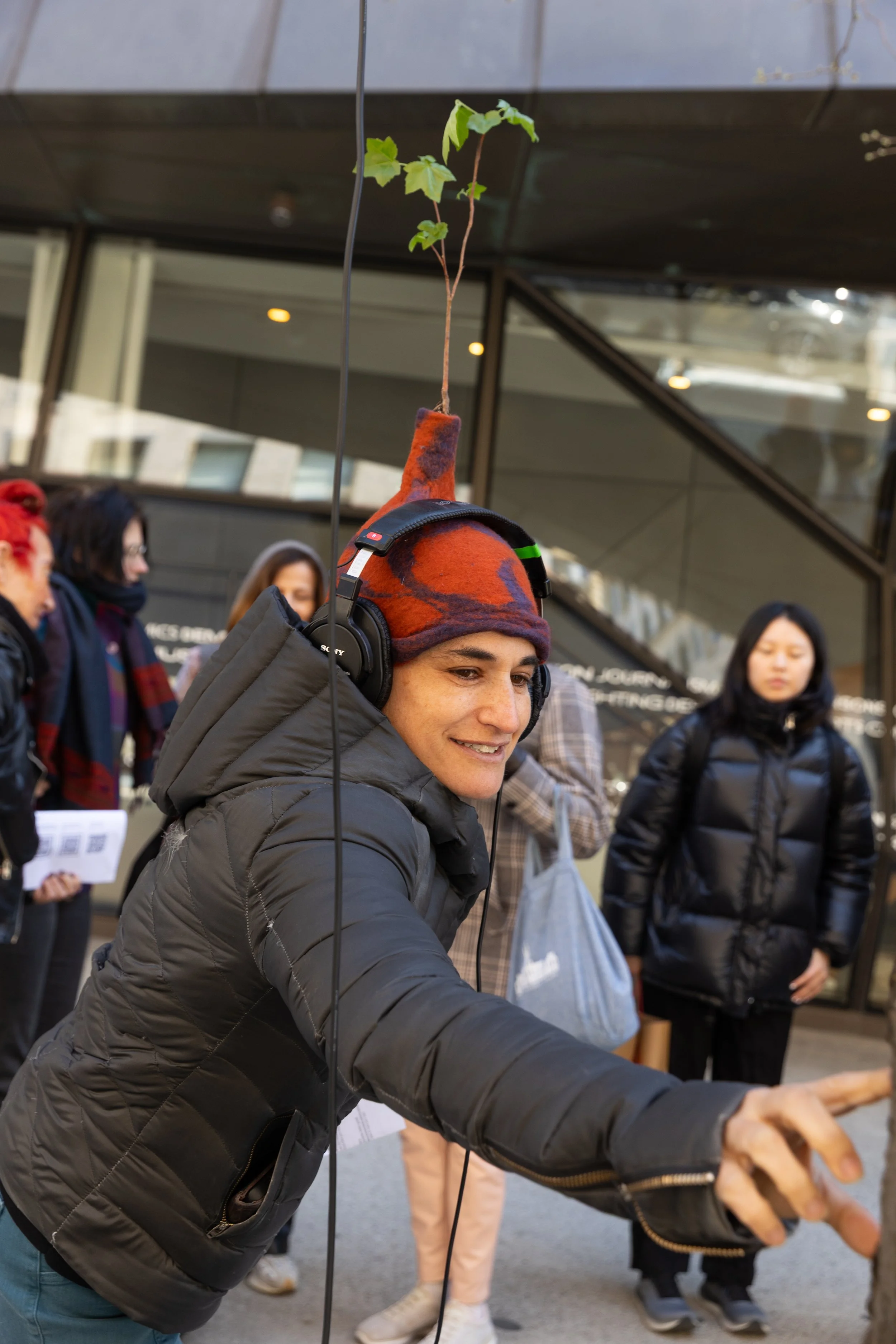At the inaugural happening, participants gathered at the intersection of 5th Avenue and 13th Street for a participatory performance blending multisensory communication, presentation, and workshopping. We began by sharing favorite memories of and relationships to specific trees. We greeted the trees using Lisa’s Sonic Encounter